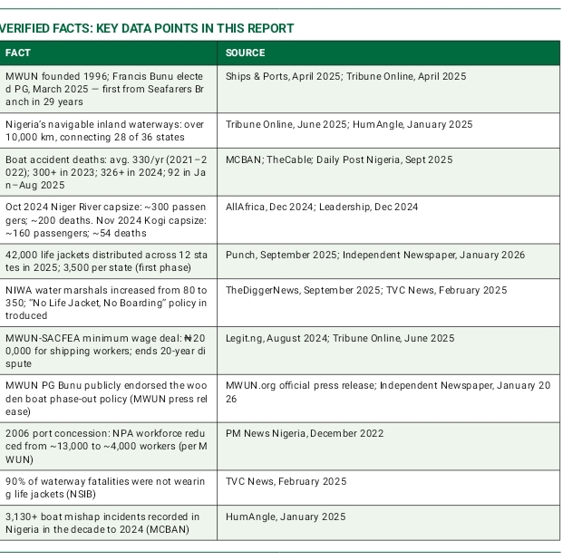 The Maritime Workers’ Union of Nigeria is not the solution to that challenge. But the evidence of its activity — from the SACFEA minimum wage breakthrough, to Bunu’s public endorsement of the wooden boat phase-out, to MWUN’s partnership with BOAN, to its longstanding demands for NIWA and NPA recruitment — shows that the union is actively engaged with that challenge across multiple fronts.What the sector needs now, and what MWUN has begun to articulate with increasing clarity under its new leadership, is a framework in which the union’s knowledge of the workforce and the waterways is formally integrated into planning and development processes — not just consulted after decisions have been made, but engaged as a co-designer of the sector’s future. Nigeria’s rivers have been waiting long enough.