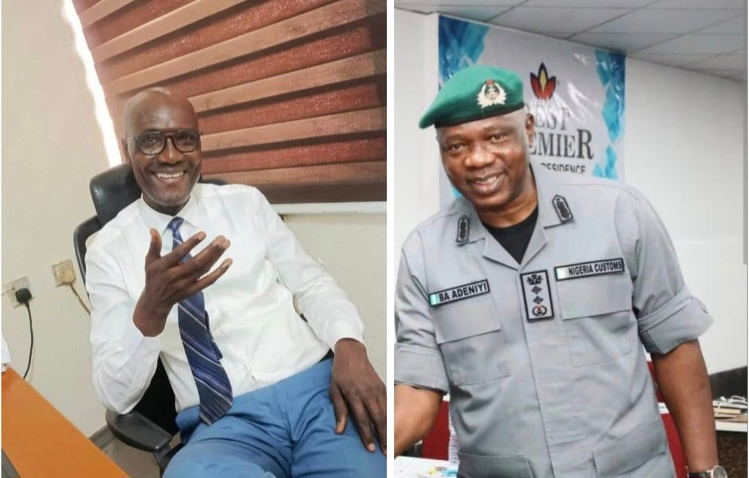 Chairman of Maritime Media Capacity Development Center (MMCDC), Sesan Onileimo (left) and the Comptroller-General of Nigeria Customs Service, Bashir Adewale Adeniyi