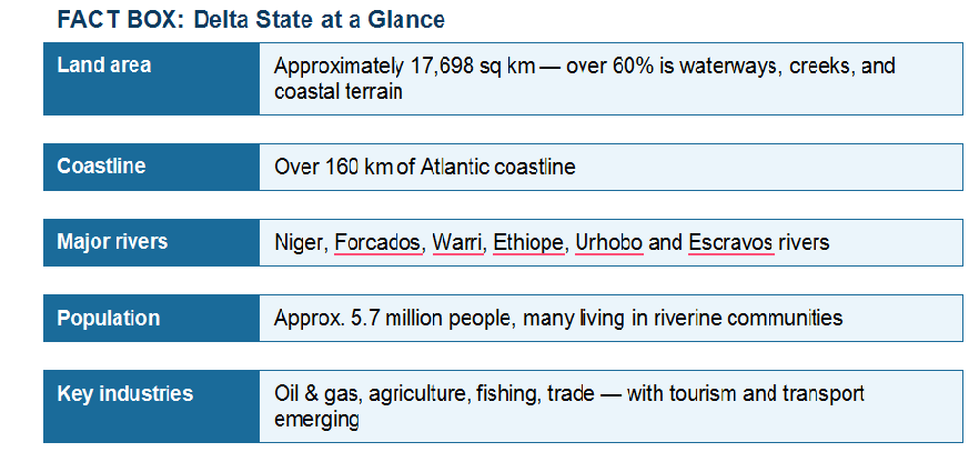 Globally, the Blue Economy is valued at over $1.5 trillion annually and is expected to double by 2030, according to the World Bank. For a riverine state like Delta — home to approximately 60% waterways and coastal territory — the sector represents a transformational opportunity.