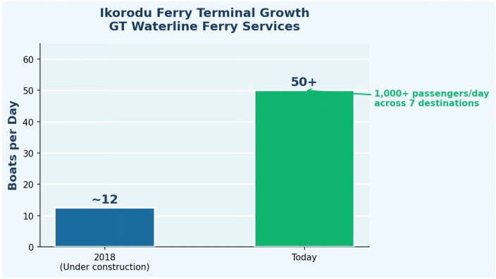 | Ikorodu ferry boats per day (2018) | ~10–15 |